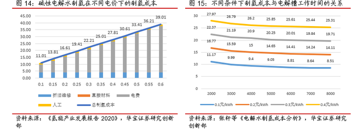 3.1.2. 电价下降和技术进步共同带动电解水制氢成本的下降