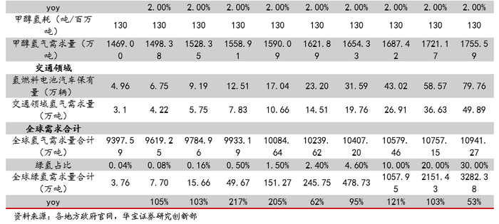 我们预测到2030年全球绿氢需求有望从2021年的3.76万吨增长到3282.38万吨,GAGR有望达到112.16%。