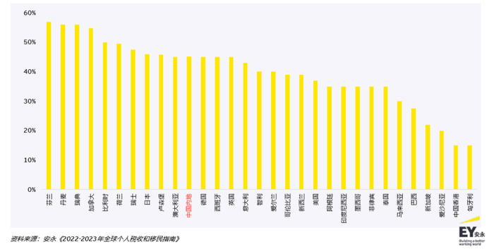 注:本图中的最高边际税率是指适用于该国家/地区居民纳税人一般收入的最高个人所得边际税率/综合边际税率。其中,