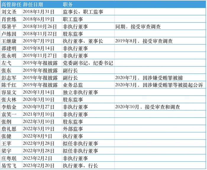 此外,广州农商行的执行董事、行长易雪飞因超过行长任职期限的监管规定,辞去该行第三届董事会执行董事、副董事长及行长等职务。据记者不完全统计,2018年至今,广州农商行共有22名高管离职。另外,6位高管因涉嫌严重违纪违法,接受审查调查以及被提起公诉。