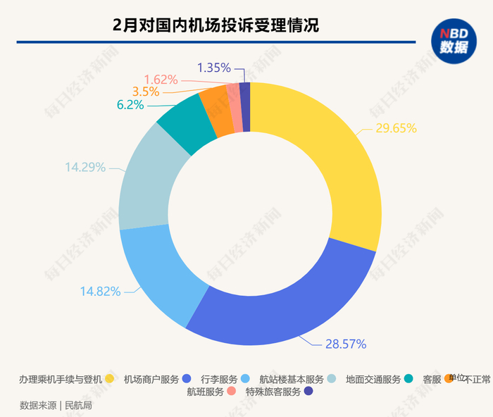 4月25日,民航局官网发布2023年2月份公共航空运输旅客服务投诉情况的通报。2月份,民航局消费者事务中心共受理旅客投诉13129件。其中,国内航空公司投诉10292件,外国及港澳台地区航空公司投诉236件,机场投诉371件,航空销售网络平台经营者投诉2230件。