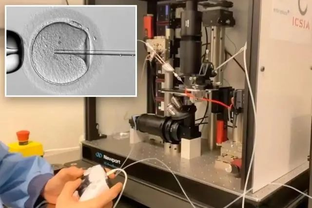 去年春天,巴塞罗那的工程师们把他们设计的精子注射机器人打包,快递到纽约。在纽约市新希望生育中心,他们将所有仪器组装起来:一个显微镜、一个机械针头、一个微型培养皿和一台笔记本电脑。