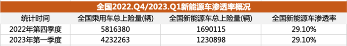 不过巧合的是,虽然今年一季度整体车市大幅萎缩,但新能源车的渗透率,却和去年四季度完全一致,没能进一步突破30%。