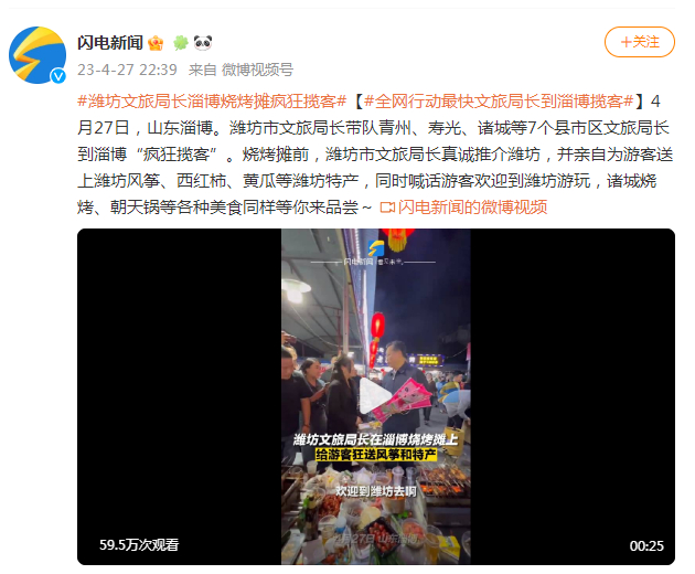全网行动最快文旅局长!潍坊文旅局长到淄博烧烤摊“疯狂揽客”