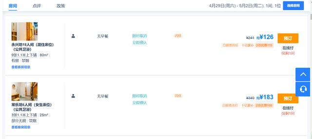 不过红星新闻记者注意到,今年五一假期在很多热门旅游城市或者景区,即使想住到这样的床位,也需要花费每天200多元的价格。