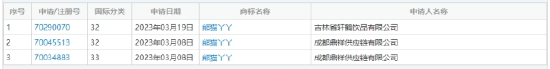 这些申请有的处于等待实质审查阶段,有的还正等待受理,申请企业所在行业五花八门,有饮品、电商、印刷等,还有以个人名义申请的,不排除以后用于商标交易的可能。