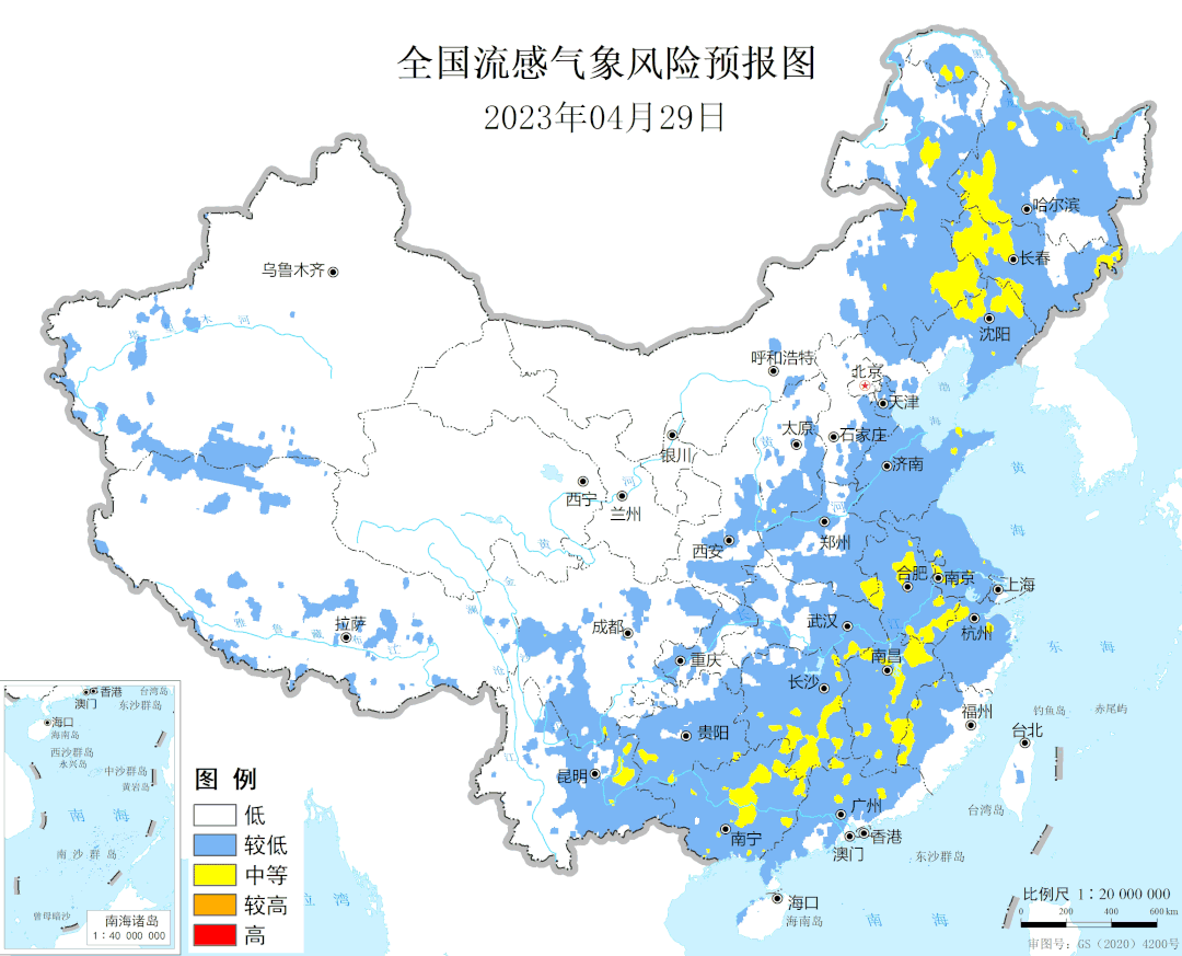 同时,需防范北方地区天气变化较大对健康造成不利影响。东北地区、新疆、西北地区北部、内蒙古西部等地部分地区将出现中等流感气象风险,其中新疆北部将出现较高流感气象风险,这些地区的公众需注意保暖防寒,降低疾病发生风险。