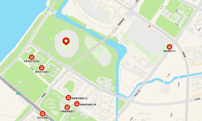 下车点1:扬帆路与科技馆街路口指定区域下车点2:国际博览中心5号门门口