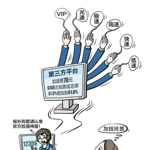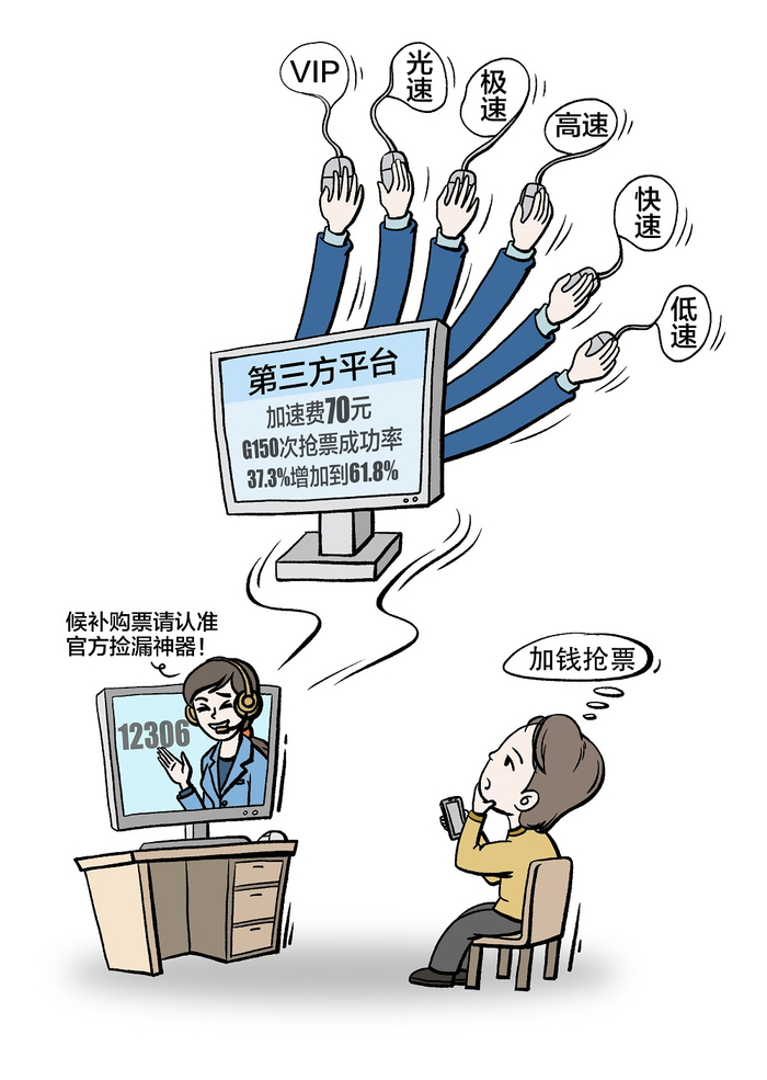 第三方平台的抢票加速服务是否靠谱?抢的票又是从哪儿来的?记者随后拨打了12306咨询电话。在等待接通的过程中,系统提示“如通过其他网站办理客票业务出现问题,12306将不予受理”。电话接通后,客服告知记者,无法评价其他平台的抢票服务,但可以保证的是,任何其他平台抢的票,都是从12306平台候补发出的,不存在“平台有自己的票”这种说法。