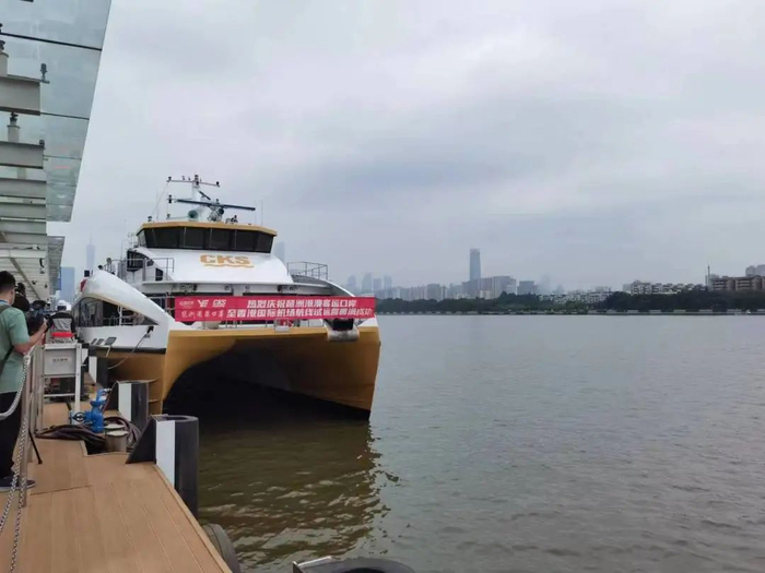 据介绍,乘坐“海天联运”航线的旅客到达香港国际机场后,无需再办理香港入关手续。9时45分,“海珠湾”号高速碳纤维客船缓缓驶出琶洲港澳客运码头,预计12时5分抵达香港国际机场(海天码头)。