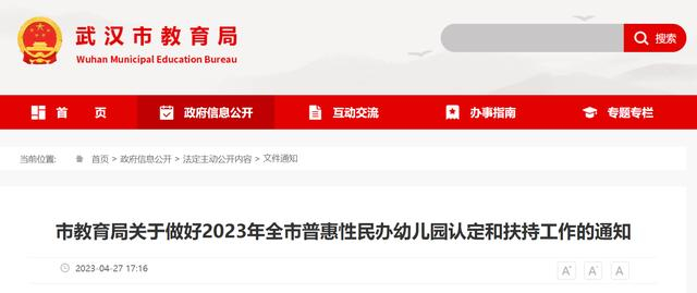 武汉市开展2023年普惠性民办幼儿园认定和扶持工作