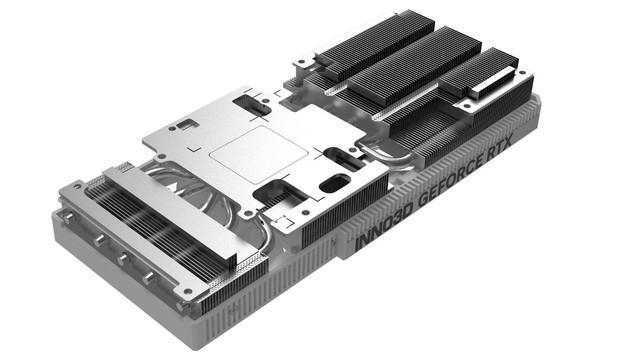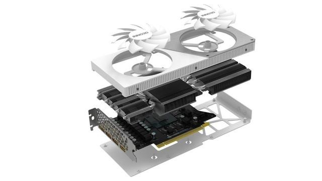 纯白色的金属背板也同样属于中高端显卡的标配,可以有效保护PCB和辅助显卡散热。
