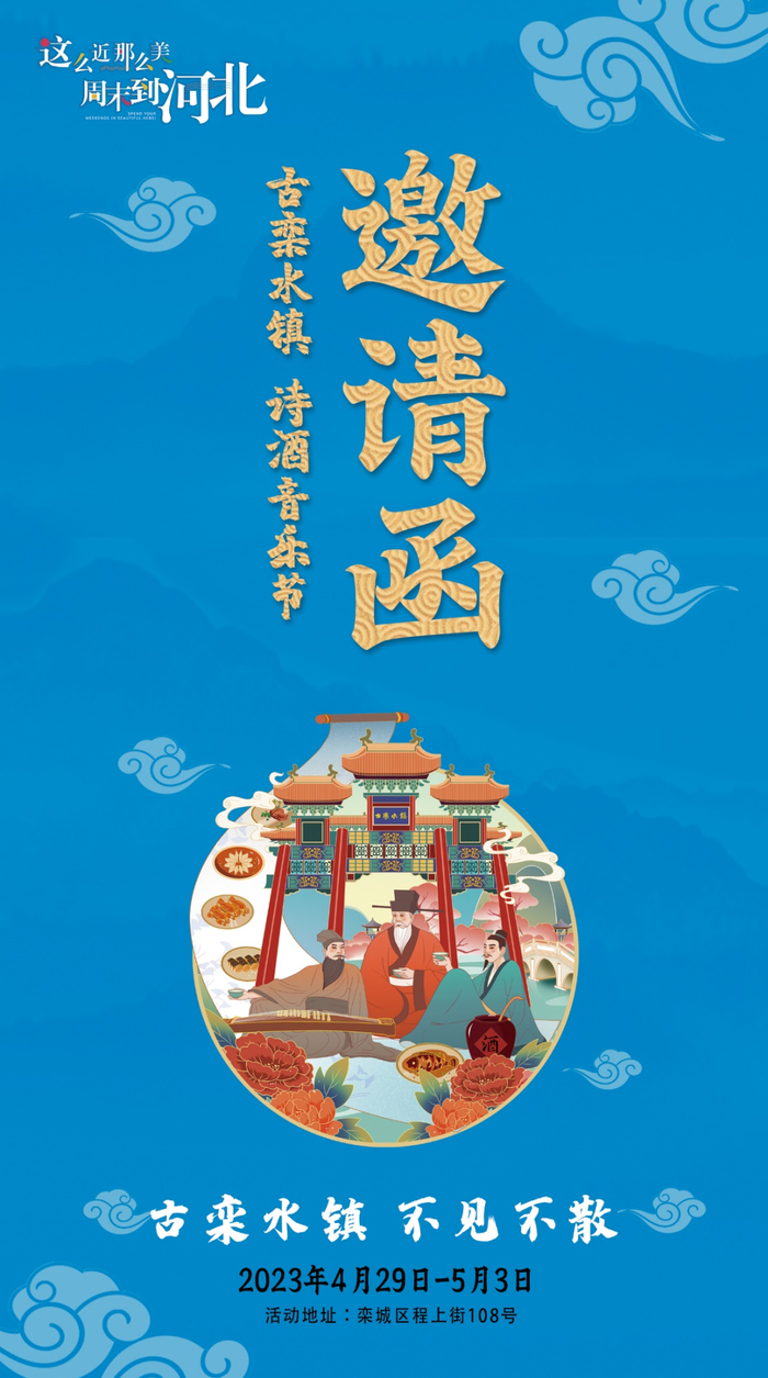 这么近那么美,周末到河北!古栾水镇,五一五天乐,诗酒音乐节!独具特色的诗词盛宴,精彩绝伦的国潮音乐,穿越时空的老爷车展,趣味十足的萌宠家族!湖畔美食,啤酒烤肉,现场更有沉浸式“东坡说”脱口秀,苏小妹招婿,不倒翁小姐姐,妙趣横生。