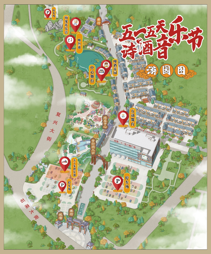 这里有精彩绝伦的互动演出。古风互动舞台上川剧变脸、不倒翁小姐姐带你体验精彩非遗表演,更有东坡说,苏小妹招胥等实景互动演艺,带你穿越千年,梦回大宋。诗酒音乐舞台上,摇滚乐队,国风乐坊,流行歌手,带您的耳朵一同聆听音乐的盛会。