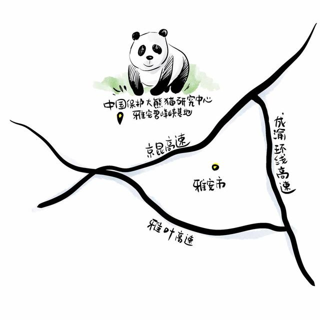 成都大熊猫繁育研究基地路线图 绘图 杨仕成