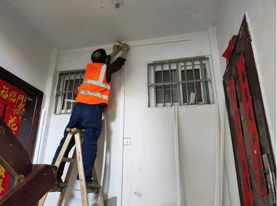 当天,在教委宿舍楼,上派镇新时代文明实践工作办公室工作人员正在检查施工情况,“目前该栋单体楼外墙管线已经整理完毕,还在与运营商协调进行入户安装。”张明介绍,即便是家里没有安装网线的,本次整改工程也预留了入户皮缆光线,方便居民后期安装网线。