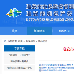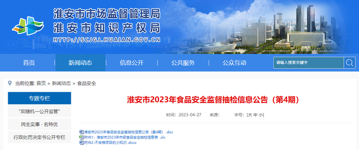 江苏省淮安市市场监管局发布2023年第4期食品安全监督抽检信息