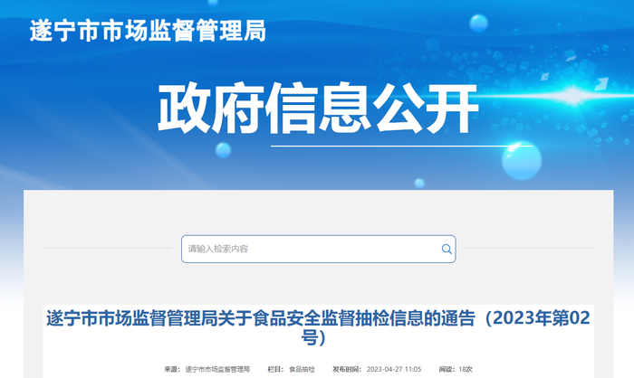 中国质量新闻网讯 近日,四川省遂宁市市场监督管理局网站发布关于食品安全监督抽检信息的通告(2023年第02号)。