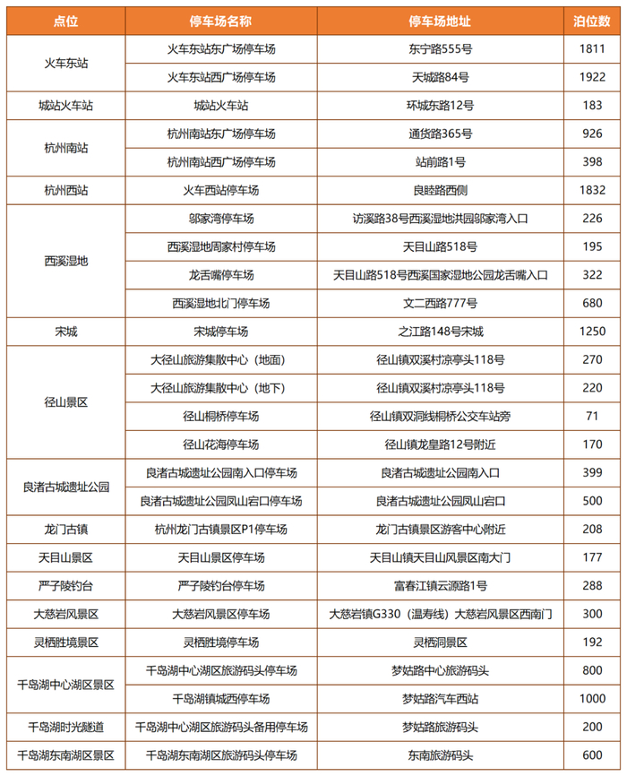 交通枢纽及热门景点停车场信息