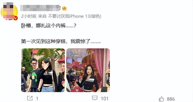 有网友对娜扎穿的裤子十分好奇,表示这种内裤外露的穿搭是第一次见。
