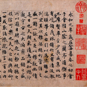 王羲之是东晋时期著名的书法家,擅长隶、草、行、楷各种笔体,他的书法平和自然,笔势委婉含蓄,雄美健秀,摆脱了汉魏的笔风,自成一家,被后世誉为“书圣”。他的行书作品《兰亭序》为历代书法家所景仰,被誉为“天下第一行书”,据传,《兰亭序》的真迹被唐太宗李世民随葬于墓中。