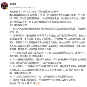在声明中,黄竣锋感谢了在此事件中对他有帮助的人,还特别感谢了古天乐和吴志雄对他的“雪中送炭”,也感谢了深圳市公、检、法政府机关对该案的重视和协助。