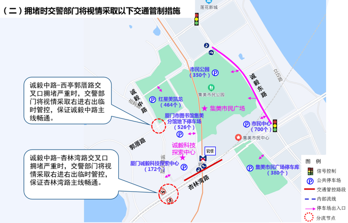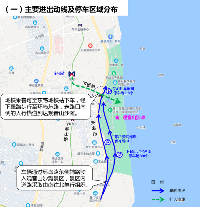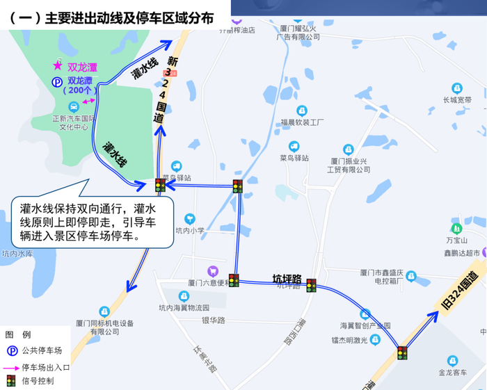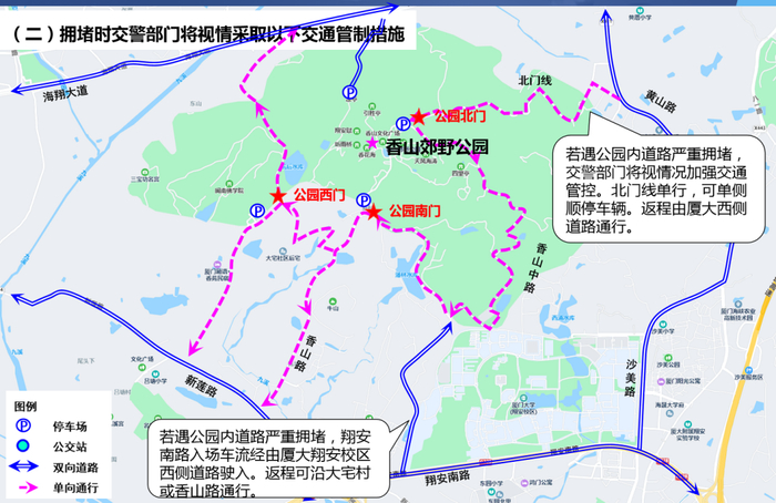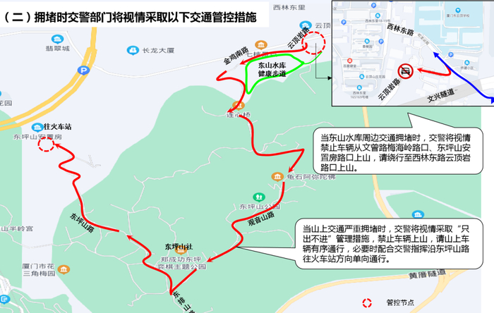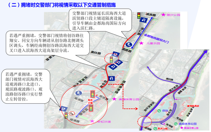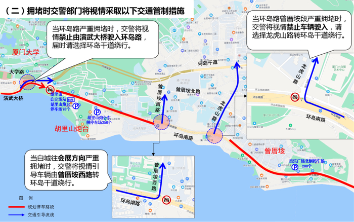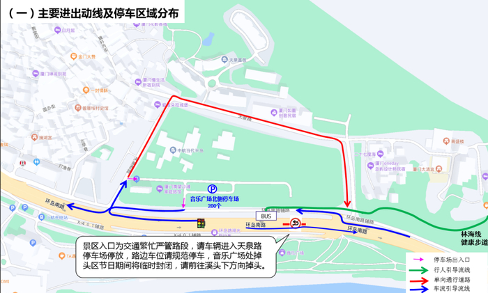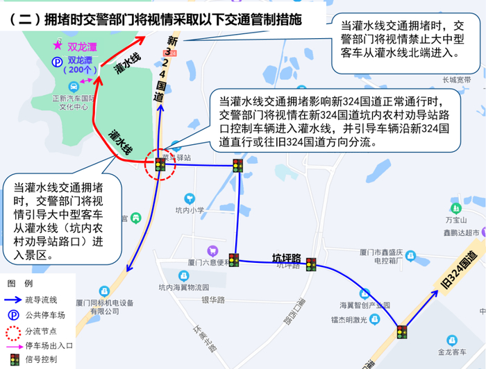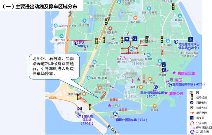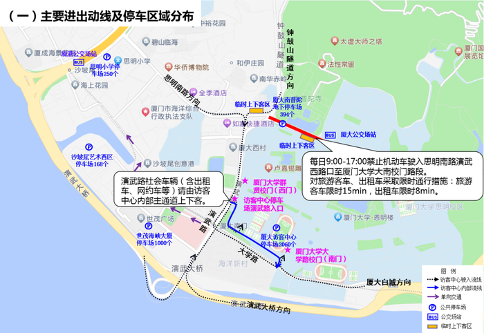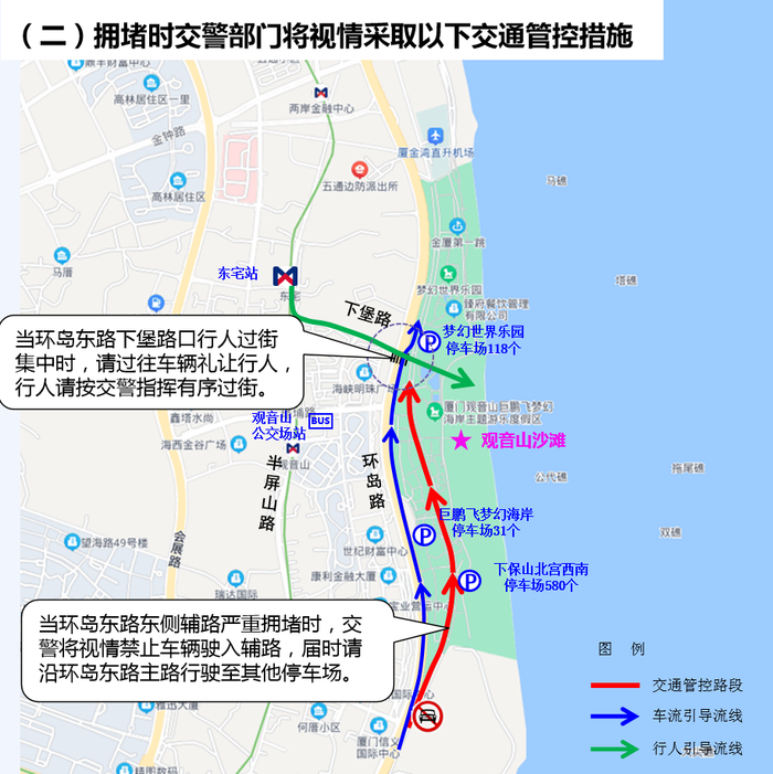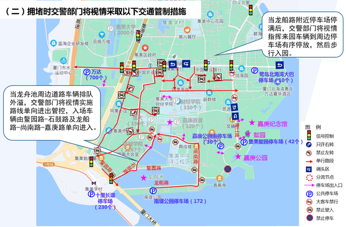 为做好厦门热门景区商圈等周边道路交通保障工作,交警部门按照“一点一策”的思路,研究梳理了全市36个重点景区商圈等周边道路交通组织出行提示,向大家介绍重点景区商圈等周边道路的机动车主要交通流向、停车场布局情况等,也对可能采取的管制措施进行介绍,并向广大市民游客提出出行建议。