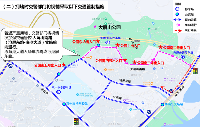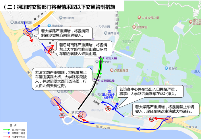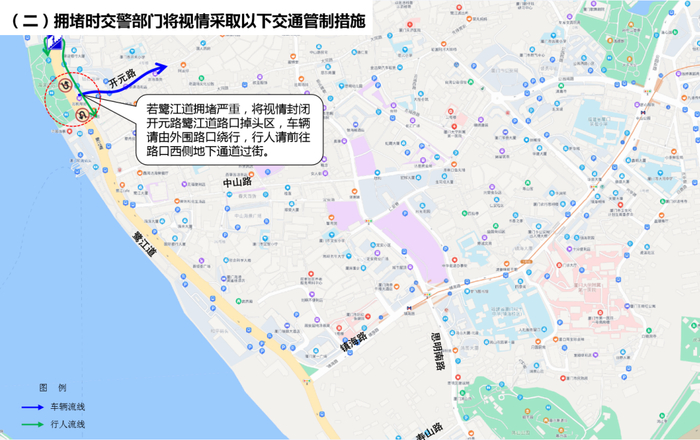 ★建议群众通过百度、高德等地图软件提前关注景区商圈等周边道路交通运行状况,并按照交警部门提示的进出流线及停车区域合理选择出行路径。当景区商圈等周边道路交通严重交通拥堵时,交警部门会根据实际适时采取相应的交通管控措施,希望广大市民游客积极配合,有序通行。