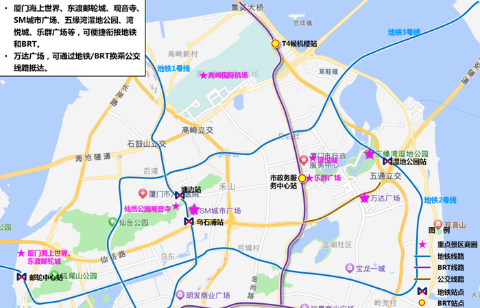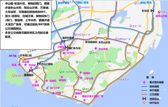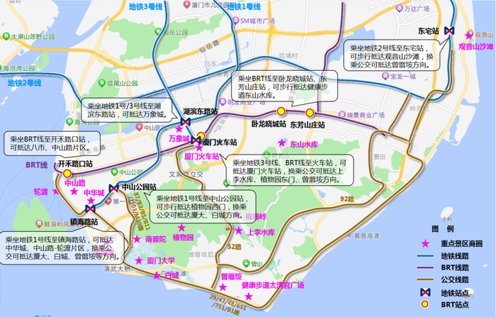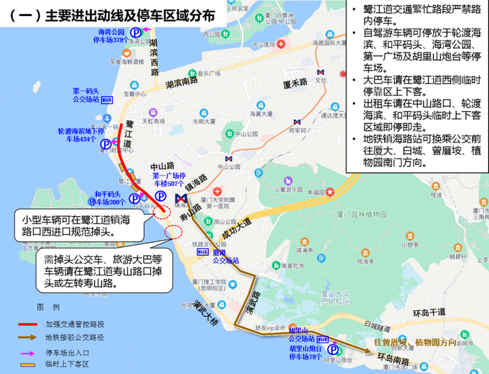 ★热门景区商圈等周边道路人多、车多,交通压力大,希望广大市民游客尽量乘坐地铁、公交、出租、旅游专线车等公共交通工具前往。此外,公交部门也将会加大鹭江道、环岛路、厦大等热门景区商圈等周边道路公交运力投送,最大限度保障市民游客公交出行。