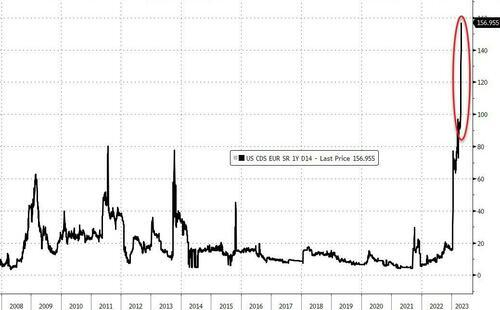 美国一年期信用违约掉期的保险成本上周便突破100个基点,本周更是连续多日创下历史最高,周四触及175个基点,是ICE数据服务自2007年有记录以来的最高值,年初仅为15个基点。