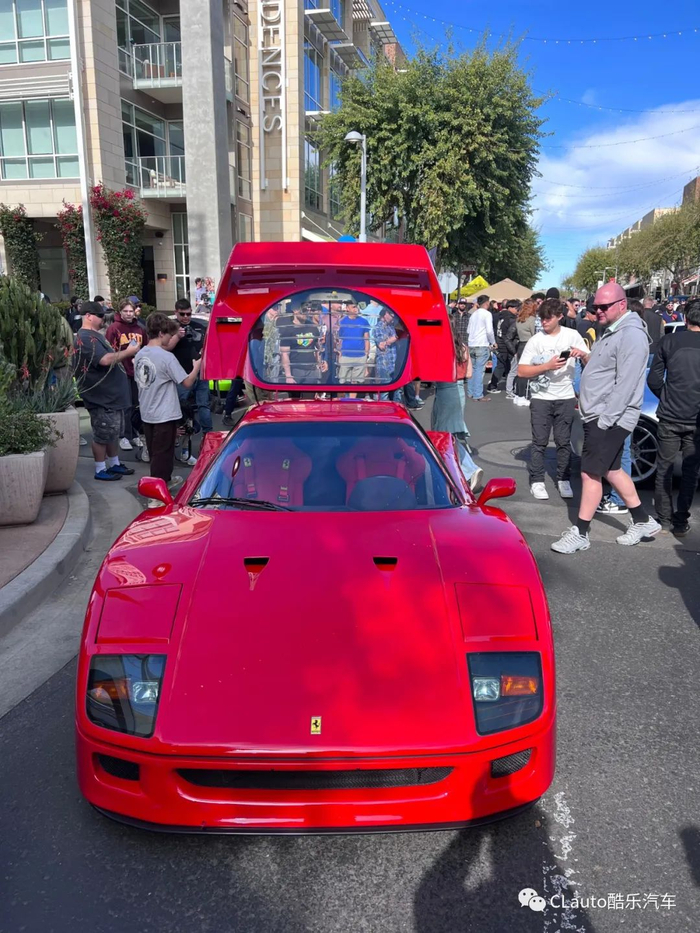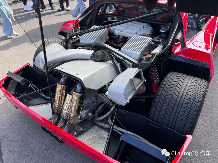 车展图片可以看出这辆经典法拉利红的F40漆面保持的很好,经典法拉利五角星轮毂,正面车整体具有下压流线型,少有的跳灯法拉利,由于是中置后驱,F40展示引擎的感觉略显夸张,整个盖子架起来了下面一览无余。不得不说这80年代的产物到现在也很耐看。