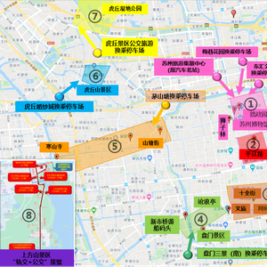 虎丘婚纱城换乘停车场(约650泊位)服务于虎丘山景区,由苏州好行旅游专线串联停车场和景区。