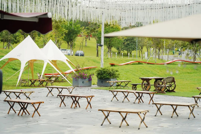 其中,餐饮设有音乐餐吧、西餐、火锅、“光明三宝”体验店等特色餐饮;文化休闲区域打造有书吧、1958光明农场记忆馆、露营基地等。游客在虹桥玩累了,就可以直接过来休闲放松、品尝美食。