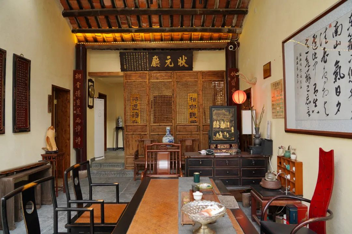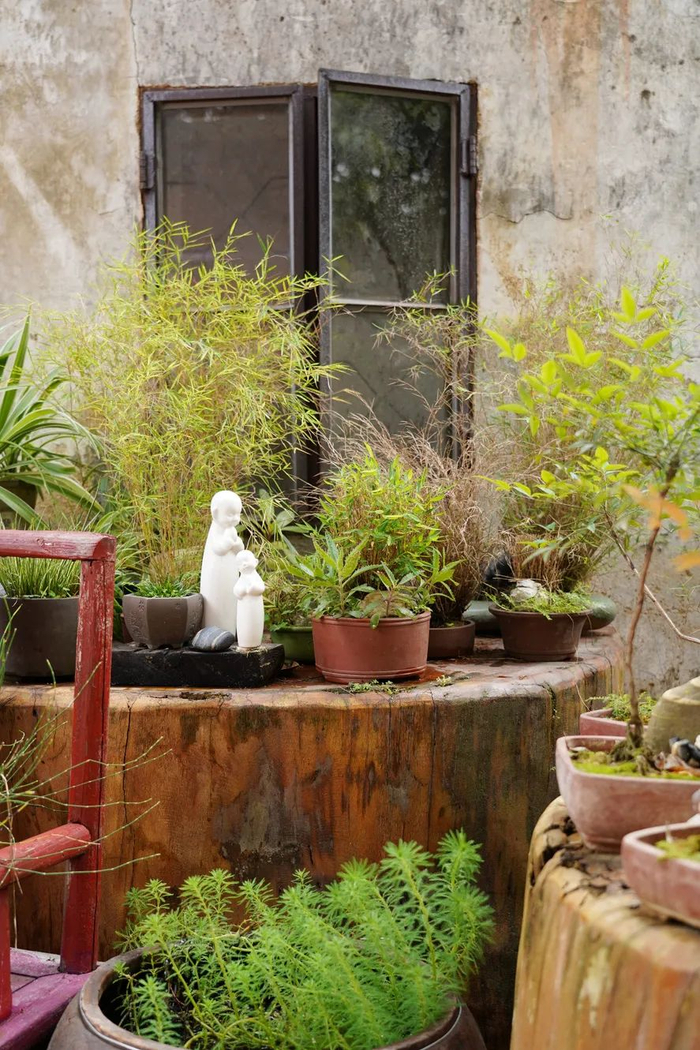 回归茶舍房屋有两进院落,茶舍主人在原有格局风貌基础上,增添了简约竹木大门、清末民初家具、旧水缸改造成的鱼缸。