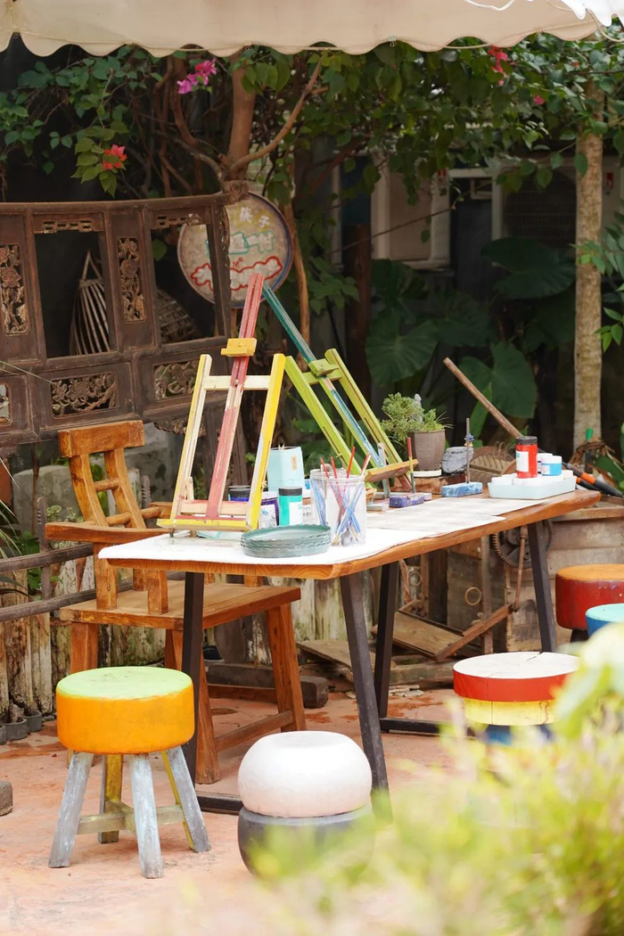 并将旧木船悬于庭院上方,让茶舍无处不在述说着岁月的故事。