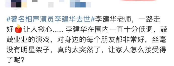 太突然!著名男演员去世!知情人:走得太突然了