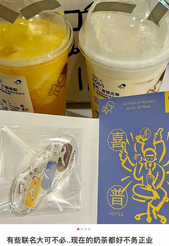 另一方面,所谓成也萧何败也萧何,喜茶的多品类联名品牌或IP有时也会碰壁,简单的联名动作不能让联名品牌和喜茶的气质内容很好地融合,显得有些突兀,就比如喜茶此前和WPS的联名合作,只是两个logo拼在一起售卖普通的周边产品,被指“不务正业”;