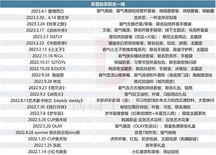 这样比起喜茶的联名少了许多创新内容和玩法,但得益于快节奏和短周期的联名模式,奈雪的联名声量也能长久地站在茶饮联名前沿。