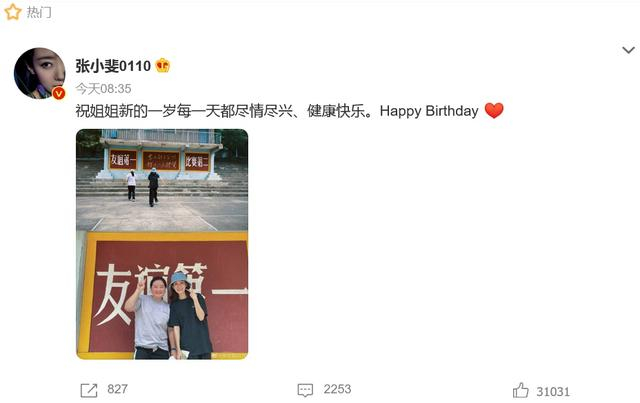 只见张小斐晒出和贾玲去《你好,李焕英》取景地故地重游的合照,写道:“祝姐姐新的一岁每一天都尽情尽兴、健康快乐。Happy Birthday!”