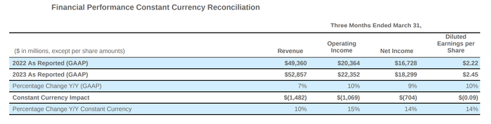 值得注意的是,微软主要业务的疲软表现与该公司今年强劲的股价表现形成鲜明对比。由于投资者对微软参与生成式AI领域的竞争感到兴奋,该公司股价持续上涨。