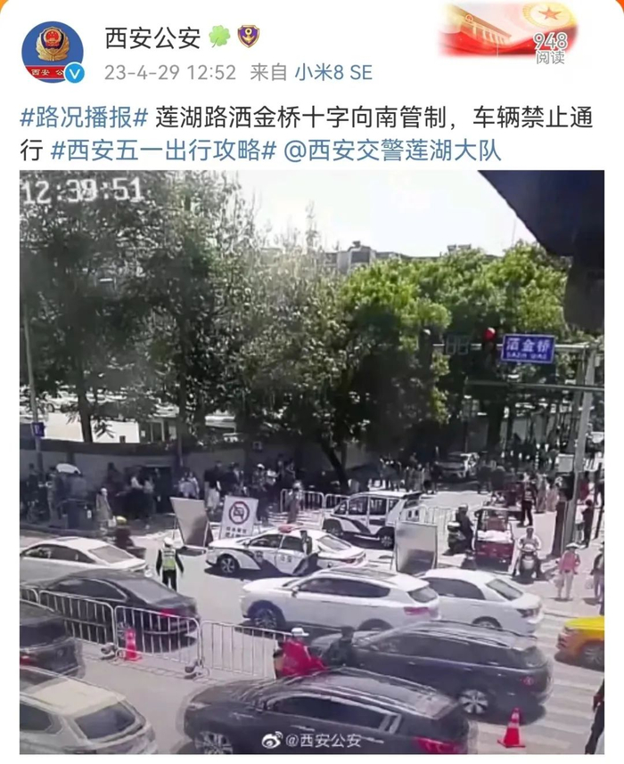240000000人次出游!刚刚,西安莲湖路洒金桥十字向南管制,车辆禁止通行
