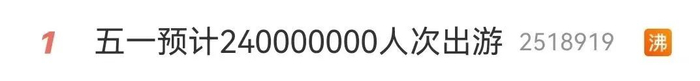 据央视报道,中国旅游研究院院长戴斌介绍:“从预测数据上看,今年‘五一’假期将会有2.4亿人次出游,将恢复到2019年的104%。从旅游收入上看,预计会创造1200亿以上的旅游收入,恢复到2019年的83%以上。”