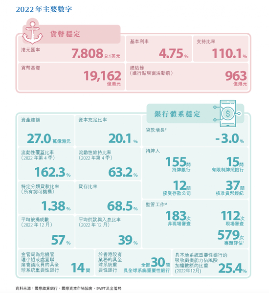 《年报》指出,联系汇率制度(联汇制度)自1983年实施至今,历经多个经济周期,成功抵御各种各样的外来冲击。2022年则再次见证联汇制度的抗震能力。