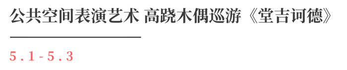 艺术先锋剧团带来世界文学的瑰宝之一,塞万提斯的跨时代巨著《唐吉诃德》专业演出剧目将走进滨海廊桥,向市民游客零距离展现原创戏剧的独特魅力,丰富游客体验的同时,让艺术走进公共空间,融入市民生活。现场将会有玫瑰赠送,快来偶遇浪漫吧。