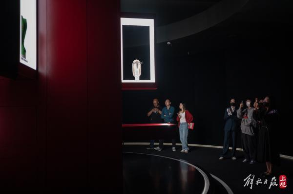 来到“灵感廊”,32个人形模特身着20世纪70年代至今的品牌服饰,组成的队列如同走秀T台。