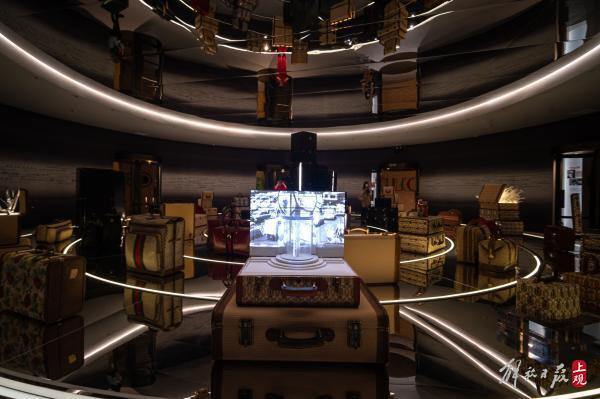 行李箱的经典款式和充满创意的展陈吸引了观众驻足观赏。