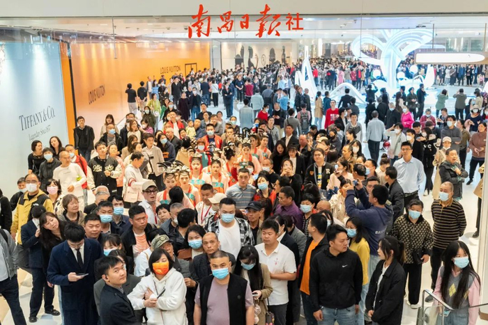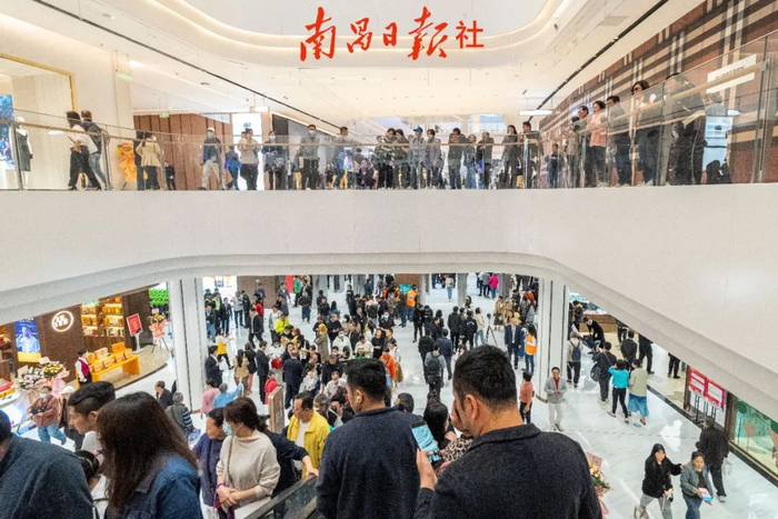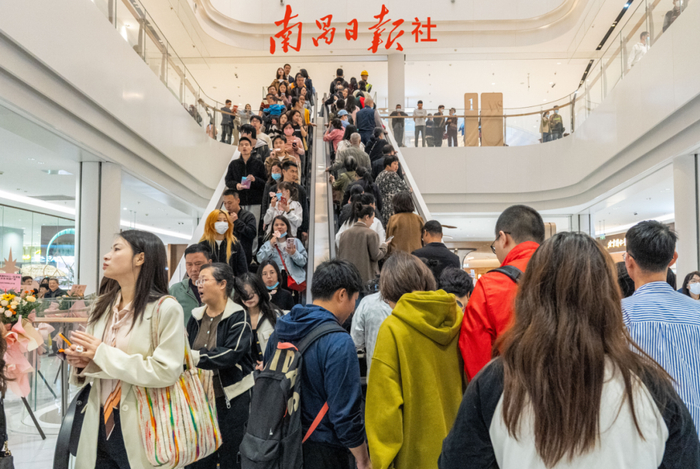 商场内,还有不少拉着行李箱的消费者。江西九江的李先生平时在北京工作,“我从北京坐高铁回来,听说南昌武商MALL开业,先来南昌逛一逛再回九江。”