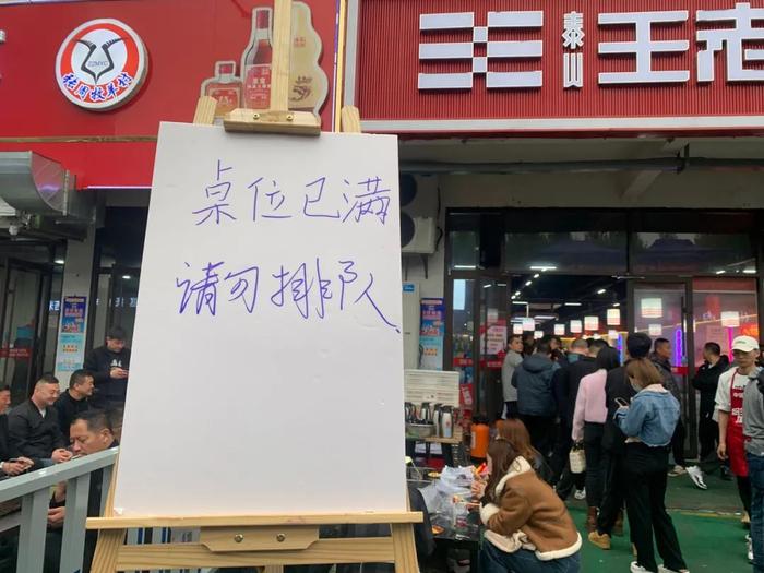 生意过于火爆,烤肉店提醒游客:桌位已满,请勿排队 / 南风窗记者 朱秋雨