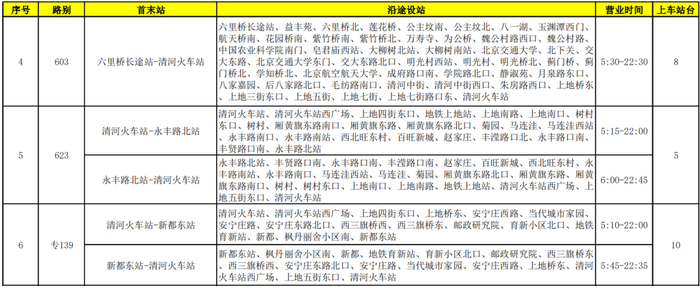 5月10日首车起,320路、495路、544路、603路、623路、专139路6条线路进驻清河火车站枢纽站。