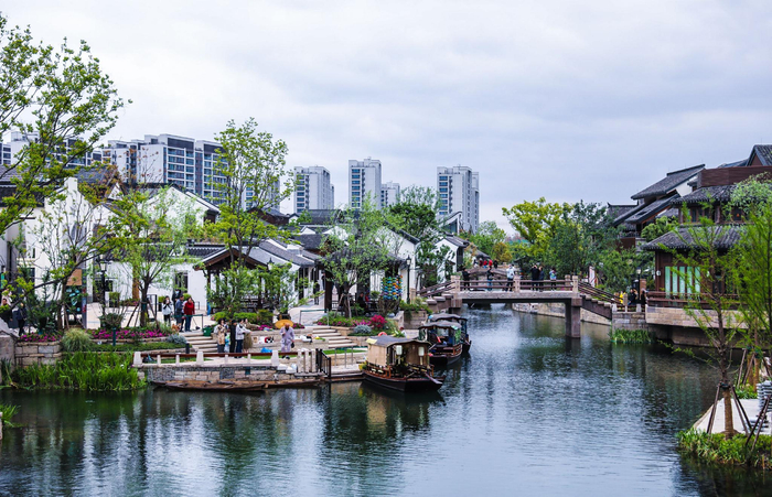 围绕“蟠龙十景”的古镇风貌、三公里曲水流觞的江南水系、千年香火的蟠龙庵“庵市”以及十字街、程家祠堂、滨水商区、粮仓艺术酒店等特色场景,打造成为整个大虹桥独一无二的江南风情休闲区。